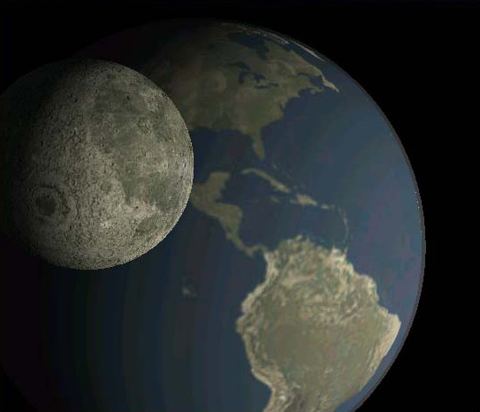 A texture mapped sphere represents the Earth, surrounded by a bluish transparent sphere to represent the atmosphere.