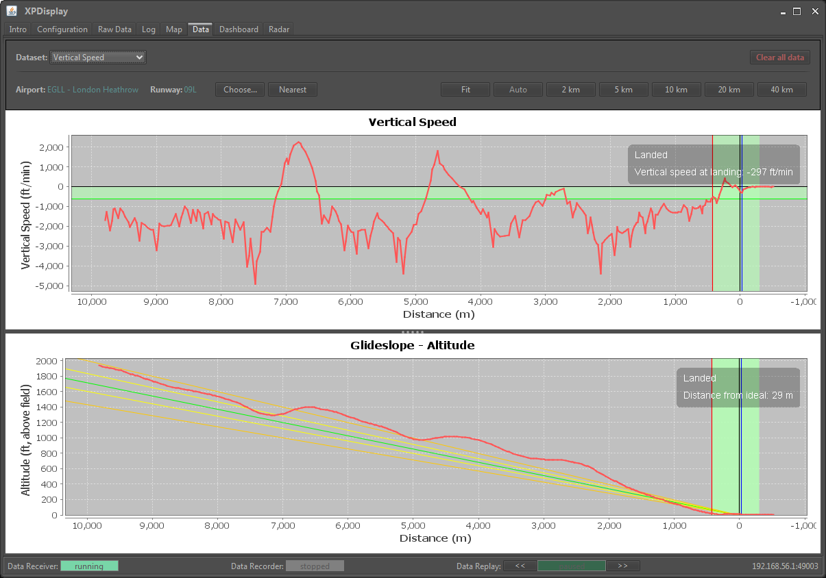 - Graph your glideslope descent, vertical speed, and landing gear forces