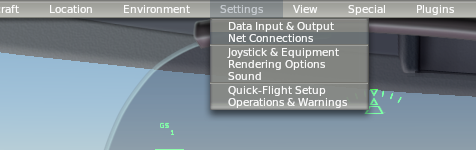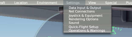 Excellent, you've done the hard work. Fire up X-Plane on your main computer and follow the instructions on the XPDisplay Intro screen:1. Select 'Settings' then 'Net Connections' from the menu: